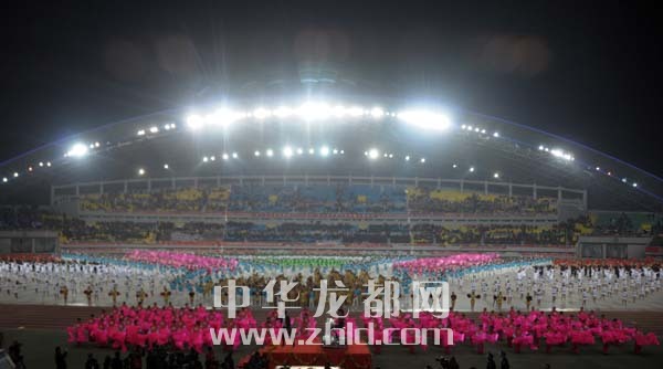 在開幕式大型文體表演《龍騰盛世·周口頌歌》中,5000余名演員為現(xiàn)場觀眾奉獻(xiàn)了一場極具濃郁周口特色的文藝演出,集中展示了我市深厚的歷史積淀、厚重的文化底蘊(yùn)及現(xiàn)代農(nóng)業(yè)發(fā)展的壯麗篇章和科學(xué)發(fā)展、共建和諧、實現(xiàn)富民強(qiáng)市的蓬勃生機(jī),讓現(xiàn)場觀眾享受了一次豐盛的文化盛宴。