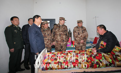 軍地領(lǐng)導(dǎo)看望鄭春光父親。(曹新旺 攝)