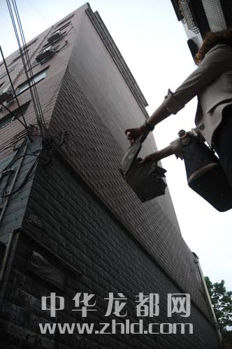 ????在家屬院門口值班的張老太說,水泥塊是6月15日下午開始脫落的,當時險些砸到一名路過的小女孩?!斑@也沒個警示標志,行人走在下面很容易被砸傷。”記者拿起一塊脫落的水泥板,發(fā)現(xiàn)很重。“樓頂至地面的距離至少20米,一旦砸到行人后果不堪設想?!币晃痪用裾f。