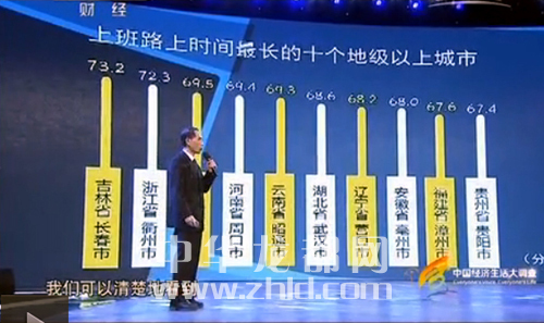 3月9日,央視財(cái)經(jīng)頻道《中國(guó)經(jīng)濟(jì)生活大調(diào)查2014—2015》發(fā)布多組數(shù)據(jù),其中一組數(shù)據(jù)顯示:中國(guó)人上班路上的時(shí)間達(dá)到55分鐘,比世界平均水平長(zhǎng)15分鐘。上班路上時(shí)間最長(zhǎng)的十大地級(jí)以上城市依次為:吉林長(zhǎng)春、浙江衢州、重慶市、河南周口、云南昭通、湖北武漢、遼寧營(yíng)口、安徽亳州、福建漳州、貴州貴陽。其中,周口以69.4分鐘的上班路上時(shí)間位列第四。