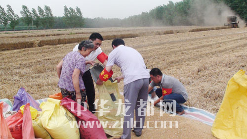 ???? 6月7日,商水縣鄧城鎮(zhèn)督查隊員在幫許村困難戶張翠蘭收麥子。三夏期間,該鎮(zhèn)成立16支三夏幫扶隊和督查隊,深入田間地頭幫助困難戶夏收夏種。(喬連軍 攝)