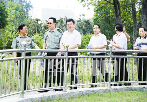 ????市委書記、市人大常委會主任、周口軍分區(qū)黨委第一書記徐光帶領(lǐng)市委、市人大、市政府、市政協(xié)和周口軍分區(qū)領(lǐng)導(dǎo)同志到全國八大國防教育主題公園之一——周口國防教育園參觀指導(dǎo)。(記者 沈湛 攝)