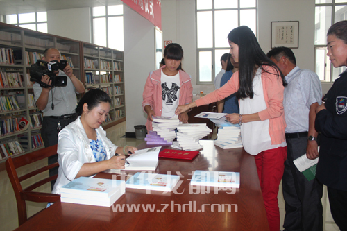????昨日16時,在市圖書館綜合閱覽室,市文化局曹克宏、市圖書館李佳和本報田維國、董雪丹等各單位相關(guān)負(fù)責(zé)人參加了捐贈儀式,曹克宏向柳韻頒發(fā)了愛心捐贈榮譽證書。捐贈儀式結(jié)束后,柳韻在現(xiàn)場舉行了簽字贈書活動(如圖)。面對讀者的熱情,柳韻一一簽字贈書,現(xiàn)場又簽贈系列圖書近百冊。