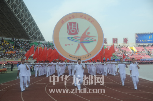 運(yùn)動(dòng)員抬著會(huì)徽入場(chǎng)