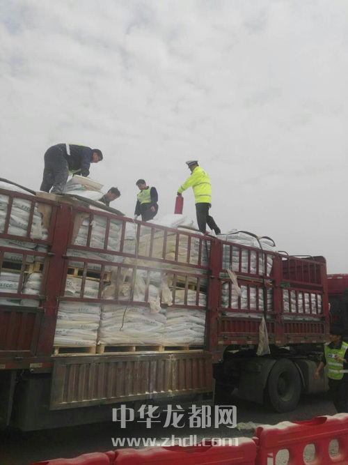 ????接到求助后,4位高速交警迅速趕往現(xiàn)場,并在第一時間把警情匯報給高速指揮中心。隨后,中隊長杜金濤帶領(lǐng)所有執(zhí)勤民警全員參與救援。他們一邊設(shè)置警示區(qū)域,疏散圍觀群眾,一邊通知收費站和高速路政人員暫時禁止車輛駛?cè)?,防止次生事故發(fā)生。