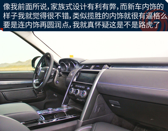 內飾趨向家族化設計,與攬勝的內飾差不多。特別是在內飾的做工和用料依舊保持了奢華的質感,只是多了些簡約的味道。高級的材料隨處可見,讓我經?;秀蔽沂遣皇情_錯了車,這樣的后果很明顯,讓我對它感覺會越來越溫柔,要是開著它去與風沙、泥土、亂石或大漠相約,我怎么能舍得?