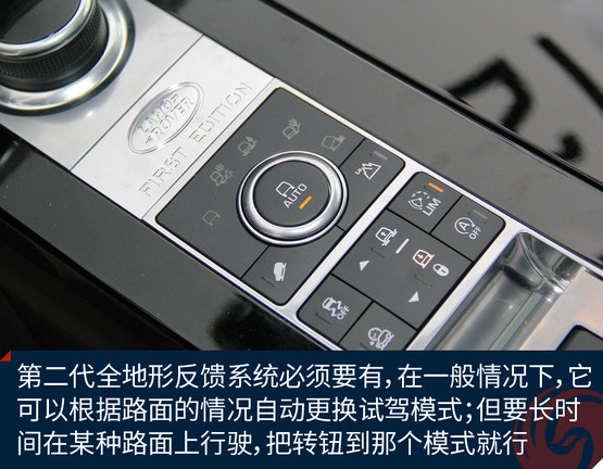 第二代全地形反饋系統(tǒng)必須有,它的特點是在任何非AUTO模式下,且車速低于50公里/時,車身會自動升高75毫米,以此應對復雜越野需求。而全地形反饋系統(tǒng),同時能夠提升車輛的發(fā)動機、變速箱、中央差速器和底盤的性能,使駕駛者可以根據具體地形選擇合適的駕駛模式。