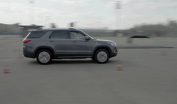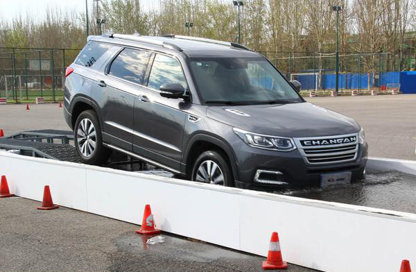 第三個項目是緊急避讓,體驗車輛抓地性;接下來的側(cè)面斜坡項目長安CS95順利通過,車身并未有異響。