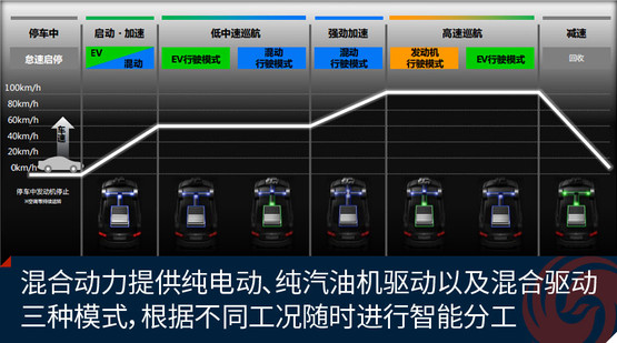只有當(dāng)車速高于65公里/時(shí)且油門開度合適時(shí),這套動(dòng)力系統(tǒng)才會(huì)有可能讓發(fā)動(dòng)機(jī)單獨(dú)驅(qū)動(dòng)車輪,但此時(shí)其還有一部分工作是為電動(dòng)機(jī)充電。而在此時(shí),如果車輛向前的驅(qū)動(dòng)力是依靠發(fā)動(dòng)機(jī)來(lái)輸出的話,那么其電動(dòng)機(jī)將不會(huì)為車輛提供動(dòng)力。換句話說(shuō),也就是意味著思鉑?;靹?dòng)的這套i-MMD系統(tǒng)雖然在車上搭載著兩個(gè)動(dòng)力源,但是平時(shí)在城區(qū)行駛,它在驅(qū)動(dòng)車輛前行時(shí)更多情況下會(huì)使用到的有且只有一個(gè)。