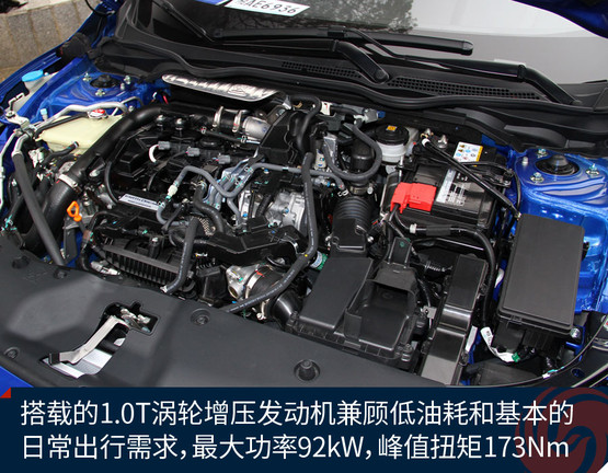 思域180TURBO車型搭載的是1.0升三缸渦輪增壓發(fā)動(dòng)機(jī),賬面上擁有的最大功率為92kW/5500rpm,最大扭矩達(dá)到了173Nm/2000-4500rpm,基本能夠達(dá)到主流1.8升自吸發(fā)動(dòng)機(jī)的水平。與之匹配的CVT無(wú)級(jí)變速器大家都比較熟悉,在本田品牌的車型中已經(jīng)有著廣泛的應(yīng)用。