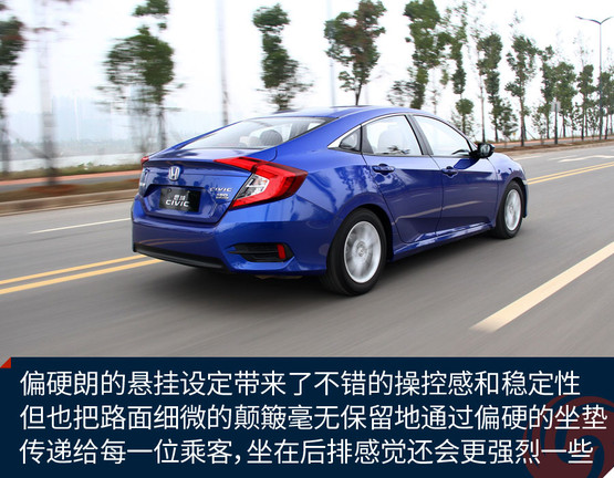 思域的定位一直偏向運(yùn)動(dòng),這一代車型自然不會(huì)放棄這一特色,底盤的扎實(shí)感、懸掛偏硬朗的設(shè)定都營(yíng)造了同級(jí)別里相對(duì)出色的操控感受。不過(guò)懸掛系統(tǒng)在韌性方面相對(duì)薄弱,路感太強(qiáng)烈,鋪裝路面上細(xì)微的不平整所帶來(lái)的振動(dòng)也比較清晰地傳遞到車內(nèi)。座椅的靠背包裹感還不錯(cuò),填充也比較得體,很舒服,但坐墊偏硬,因此行駛中車輛整體對(duì)振動(dòng)的抑制能力欠佳,很大程度上影響了舒適性。