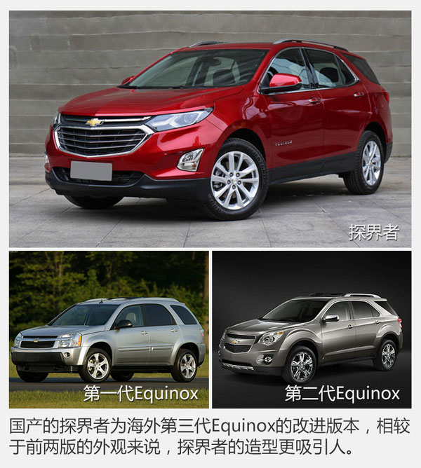 探界者其實(shí)并非科帕奇的換代車型,而是完完全全的一款全新車型,國產(chǎn)探界者也并不是第一次出現(xiàn)在世人面前;探界者早在北美市場供應(yīng),名為Equinox的它是通用汽車在北美市場最受歡迎的車型之一。這次引入國內(nèi)的探界者已經(jīng)是它的第三代車型,而第二代在整個北美市場位列全部車型銷量榜的第15位,可見其可靠的實(shí)用性和較高的性價比受到了多大的認(rèn)可。