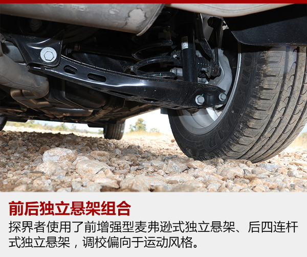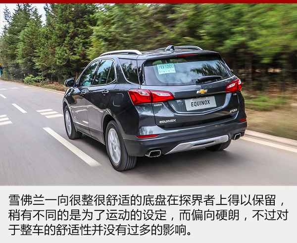 探界者的底盤受到雪佛蘭運(yùn)動傾向的影響,被調(diào)校的有些偏硬,這樣對于車身側(cè)傾的抑制就非常到位,面對路面上連續(xù)的起伏,緊致的懸架也帶來很強(qiáng)的整體感。但是當(dāng)面對較大的顛簸或者減速帶一類的時候,車身就會產(chǎn)生彈跳的感覺,而且懸架的回彈稍有延遲,總有一次小幅度的二次彈跳,稍稍影響了舒適性。