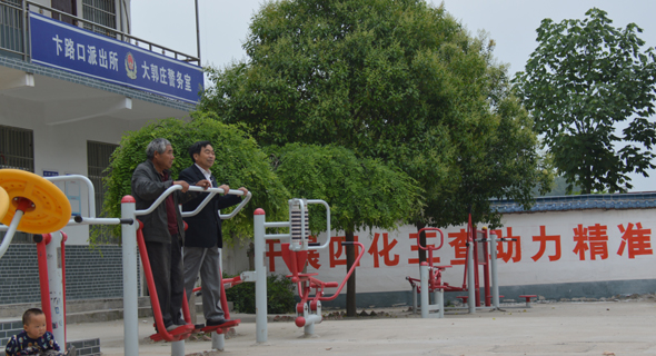 大郭莊村村民在文化廣場(chǎng)鍛煉身體