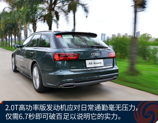 ????????這套動力總成在絕大多數(shù)情況下都設(shè)定風(fēng)格都是注重節(jié)油,輕踩油門時動力輸出提升比較遲緩,但再深踩油門挑逗渦輪全力以赴就有點(diǎn)“過火”了??偟膩碚fA6 Avant的動力釋放風(fēng)格是先禮后兵,在市區(qū)行駛控制動力的平和輸出需要一定的經(jīng)驗和技巧,但還是要對雙離合變速器給與肯定:它的換擋既快又穩(wěn),低速時的闖動也控制的難以感知。如果開車的風(fēng)格比較活潑激進(jìn),選擇運(yùn)動模式會提供讓你滿意的動力響應(yīng)。