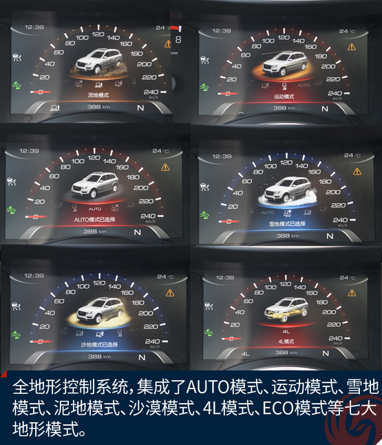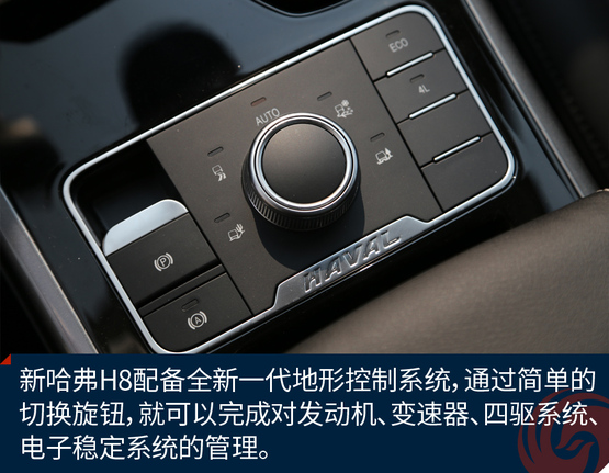 ????????四驅(qū)系統(tǒng)也是新哈弗H8的亮點,搭載全新一代全地形控制系統(tǒng),可使駕駛者簡單的旋轉旋鈕,切換駕駛模式,這套系統(tǒng)集成了7大不同的駕駛模式。讓駕駛者可以輕松面對各種復雜的路況,這套系統(tǒng)的目的就是把復雜的操作簡單化。