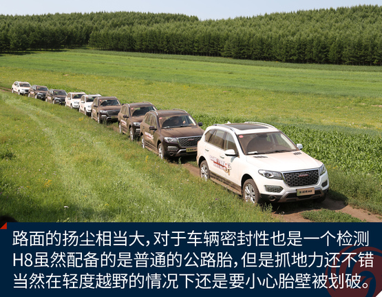 ????????經(jīng)過一段輕度的草原穿越,這段路程主要是體驗H8的通過性和濾震性能,好戲才剛剛開始,通過這段路程我已經(jīng)感受出了H8偏向城市型SUV的調(diào)教,底盤很穩(wěn)健,但是懸掛比較硬朗。