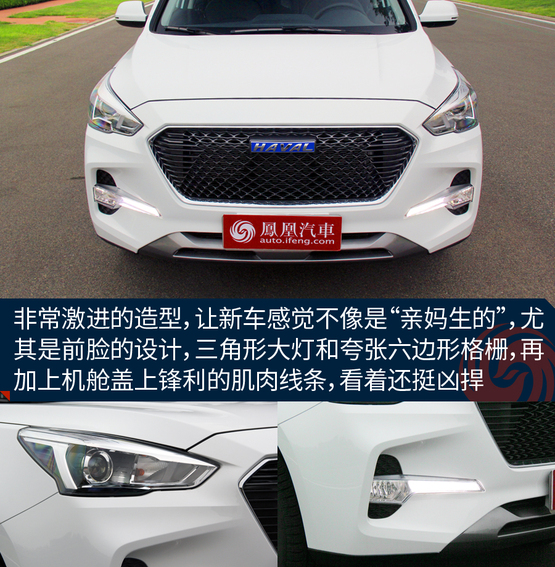 ????????前面曾說,M6的樣子是最不哈弗的,主要是它采用了全新的外觀設計風格,前臉以大量平直的線條勾勒出凌厲的造型。六邊形網(wǎng)狀前進氣格柵搭配棱角分明的前大燈組,特意把它年輕、時尚的一面體現(xiàn)的很明顯。此外,大燈組下方的進氣口以及大尺寸的LED日間行車燈設計給整車起到了畫龍點睛的作用。