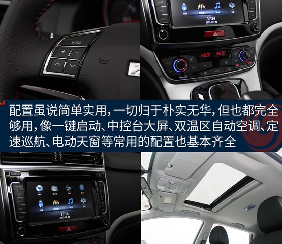 ????????內(nèi)飾相對的看著沒那么大的驚喜,主要是它與老款哈弗H6車型的樣子基本保持一致,包括橫向空調(diào)出風口、大尺寸中控屏幕以及換擋桿造型。配置方面,該車配備了多功能真皮方向盤、防夾電動天窗、一鍵啟動、雙溫區(qū)自動恒溫空調(diào)、自動雨刷、自動大燈、主駕駛電動座椅等實用裝備,對于不到10萬的家用車來說太夠用了,沒必要再弄那些花里胡哨的東西,比單純?yōu)榱俗非筻孱^和性價比要好,總結一句話就是:一切簡單就好!