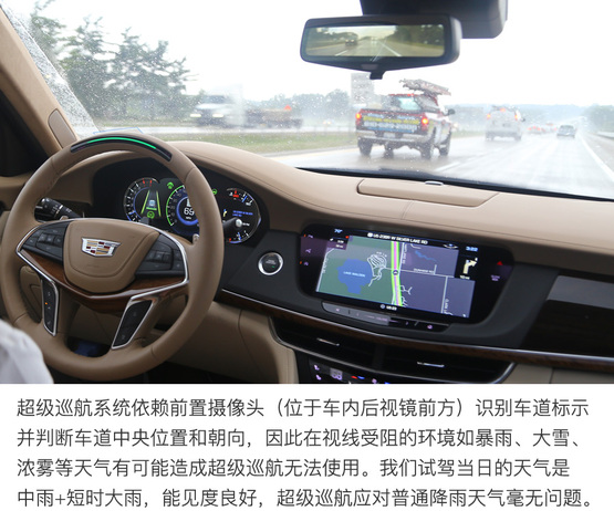 ????????超級巡航系統(tǒng)通過GPS定位的高精度地圖和車載攝像機定位和識別行駛路徑并判斷車輛所在的車道,所以遇到暴雨、大霧或沙塵等影響攝像頭工作的天氣,或者駛?cè)胨淼雷钄郍PS信號的時候,超級巡航系統(tǒng)的使用可能受到影響。雖然這些突發(fā)狀況可能會導(dǎo)致超級巡航功能在行駛中突然推出,但不必擔(dān)心安全問題,系統(tǒng)會及時提示駕駛者接管汽車,其邏輯與駕駛者“失能”的提醒流程幾乎相同,駕駛員有從容的時間反應(yīng)并接管汽車。