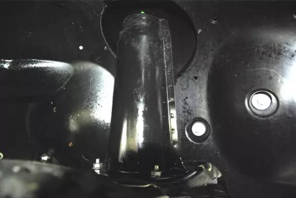????衛(wèi)士的底盤(pán)前視,衛(wèi)士作為一款硬派越野車(chē),最小離地間隙達(dá)到了323mm(從圖上可以看到這一最小間隙位于前軸的差速器鼓包處),320mm的最小離地間隙意味著什么?一個(gè)人平躺在地面上,衛(wèi)士能從上方駛過(guò)而人不會(huì)有任何損傷。相比于一般SUV的200mm左右的最小離地間隙,衛(wèi)士顯然不在一個(gè)層級(jí)上。