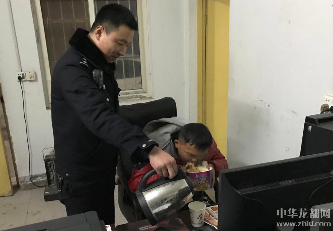 1月25日晚10時(shí)許,雪一直在下。扶溝縣公安局柴崗派出所接到群眾報(bào)警稱,在柴崗鄉(xiāng)前楊路段,一名20歲左右的男孩在路旁雪堆里坐著,疑似精神異常。接到報(bào)警后,值班民警郭晨航帶領(lǐng)輔警宋紹帥迅速趕到現(xiàn)場(chǎng)。發(fā)現(xiàn)路邊男孩衣著單薄,凍得瑟瑟發(fā)抖,已說(shuō)不出話來(lái)。民警趕緊把男孩扶上車到派出所。民警先給男孩倒了一杯熱茶,然后詢問(wèn)他家的情況。男孩只能進(jìn)行簡(jiǎn)單的溝通,說(shuō)不出自己的姓名和家庭住址,只說(shuō)餓。民警一邊趕忙拿來(lái)泡面、火腿腸讓男孩吃,一邊到男孩經(jīng)過(guò)的路口調(diào)查走訪,并通過(guò)微信朋友圈發(fā)布尋找男孩親人的消息,并附上男孩的照片。