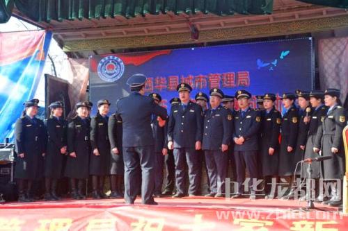 伴隨著熱鬧的龍獅表演,演出正式開始。一首由城管局班子成員和部分執(zhí)法隊員合唱的《沒有共產黨就沒有新中國》拉開演出序幕,隨后的歌曲、豫劇選段、架子鼓表演、詩朗誦等節(jié)目將此次文藝演出次第推向高潮。