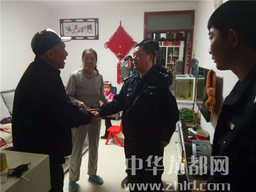 民警一邊安撫老人情緒,一邊進(jìn)一步與老人溝通,得知其子名叫趙冬明,在周口市開(kāi)發(fā)區(qū)地稅局工作。老人沒(méi)有記住家人電話、無(wú)法聯(lián)系,民警于是開(kāi)車(chē)將老人送至周口市開(kāi)發(fā)區(qū)地稅局家屬院,經(jīng)多方打聽(tīng)終于找到老人兒子趙冬明家,將老人安全送到家中。老人激動(dòng)的熱淚盈眶,并向民警表示感激。