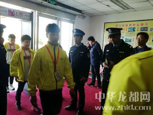 在市體育館的入口處設(shè)有安檢門,門口兩側(cè)各有4名民警檢查進(jìn)入場館的人員證件,無論是工作人員還是運(yùn)動員、裁判員都必須憑組委會發(fā)放的證件方能進(jìn)入。另有2名民警手持金屬探測儀,在進(jìn)入的人員身上探測可疑金屬,以防止有人誤帶管制刀具等違禁品進(jìn)入場館內(nèi)。進(jìn)入當(dāng)日舉行舉重比賽的場館后,記者看到有身穿警服的民警在現(xiàn)場不時走動,維持賽場秩序。