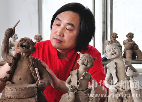 從發(fā)現(xiàn)泥人碰撞易碎、遇水易損,張振福便歷盡艱辛、反復嘗試,終于像燒磚頭一樣,把泥塑燒成了陶塑;然而,從土黃色變成了磚瓦色,陶塑的顏色仍然單一、呆板,不能展示出泥塑的深層次神韻。于是,張振福大膽地將泥塑與鈞瓷結(jié)合起來,創(chuàng)造了一個不一樣的藝術(shù)世界。