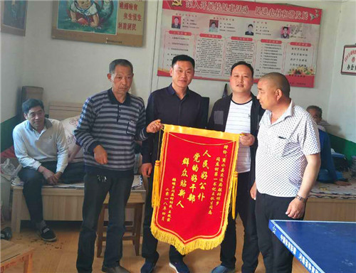 中華龍都網(wǎng)訊(周口報(bào)業(yè)全媒體記者 付永奇 通訊員 胡書廣)4月19日,商水縣張明鄉(xiāng)閆莊行政村貧困戶王改霞家人將一面寫有“人民好公仆,黨的好干部,群眾貼心人”的錦旗送到閆莊行政村村室,感謝商水縣交通局派出的駐村“第一書記”王秋生長(zhǎng)期以來對(duì)她們一家的關(guān)心和幫助。
