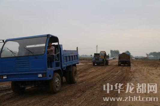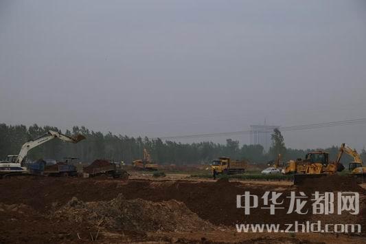 中華龍都網(wǎng)訊(周口報業(yè)全媒體記者 張勁松文/圖)4月21日上午,記者在東新區(qū)引黃調(diào)蓄施工現(xiàn)場了解到,截至目前,該項目已開挖土方79萬立方米,遷墳682座,伐樹21578棵。當(dāng)日上午9時許,記者在施工現(xiàn)場看到,大型挖掘機(jī)、翻斗車把挖出的黃土拉向湖岸的位置。推土機(jī)轟鳴著在平整場地,酒水車在整個施工現(xiàn)場來回不停地奔跑降塵,整個施工現(xiàn)場60余臺機(jī)械來往穿梭,湖的雛形正在形成,湖的面積逐漸“長”大,北岸湖堤也在逐漸隆起。