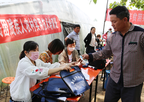 5月10日,在鹿邑縣馬鋪鎮(zhèn)完樓村殘疾人士付天軍的培訓(xùn)基地——蔬菜種植合作社助殘大棚內(nèi),來(lái)自鹿邑縣馬鋪鎮(zhèn)、渦北鎮(zhèn)產(chǎn)業(yè)集聚區(qū)的150多名建檔立卡貧困殘疾人,齊聚這里免費(fèi)學(xué)習(xí)黃瓜種植技術(shù),付天軍在大棚內(nèi)手把手地進(jìn)行指導(dǎo),來(lái)自華陽(yáng)學(xué)校的農(nóng)業(yè)專家李中蘭也應(yīng)邀在大棚內(nèi)對(duì)常見的病蟲害進(jìn)行詳細(xì)講解。