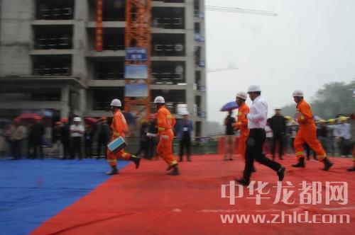 中華龍都網(wǎng)訊(周口報業(yè)全媒體記者 朱海龍)5月11日上午,在商水縣建業(yè)城項目施工工地,商水縣舉辦建筑施工現(xiàn)場應(yīng)急救援演練,200多人冒雨觀摩現(xiàn)場演練。