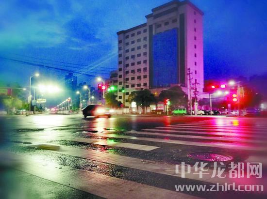 昨日凌晨,小雨暫歇,一輛汽車(chē)駛過(guò)濕漉漉的路面。