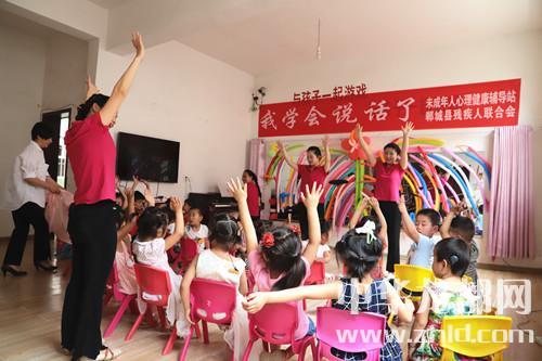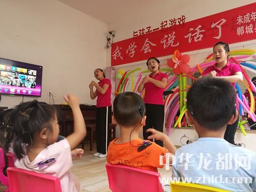 家長如此開朗,孩子們的世界肯定會(huì)更加陽光。記者隨著鄲城縣殘聯(lián)理事長楊瑞林和聾兒語訓(xùn)中心主任邵莉娜來到了二樓聾兒語訓(xùn)學(xué)習(xí)班?!拔覍W(xué)會(huì)說話了”,大愛至簡,教學(xué)班里僅此一句標(biāo)語,墻上是一面鏡子,鏡子上貼滿了老師和孩子們一起做的彩氣球,旁邊是一架鋼琴,4位語訓(xùn)老師正在張著大口(說話標(biāo)準(zhǔn)口形)、動(dòng)作夸張地給孩子上聽力課,老師邊彈琴,邊做手指舞、跳少兒舞,孩子們慢慢聽、慢慢模仿、慢慢張口咿呀跟著唱……