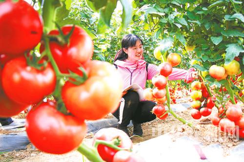依托河南農(nóng)業(yè)大學(xué)專家團隊,扶溝縣蔬菜研究院研發(fā)出400多個番茄新品種,通過集中展示讓種植戶優(yōu)中選優(yōu),并實施對貧困戶購買種苗優(yōu)惠50%、特困戶免費供應(yīng)的優(yōu)惠政策,帶動206戶貧困戶實現(xiàn)脫貧。圖為工作人員在記錄番茄新品種的試驗數(shù)據(jù)。谷志方 攝