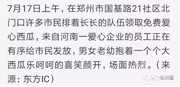 鄭州市民排著長(zhǎng)長(zhǎng)的隊(duì)伍領(lǐng)取免費(fèi)愛(ài)心西瓜,來(lái)自咱扶溝的宋鐵托做了一件感動(dòng)家鄉(xiāng)人小事,而這件小事卻上了《人民日?qǐng)?bào)》。