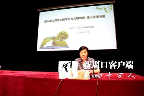 羅文閣表示,曾琰珉教授以“深入學習貫徹習近平生態(tài)文明思想 建設美麗中國”為題,從習近平生態(tài)文明思想提出的時代背景、生態(tài)文明建設是關系中華民族永續(xù)發(fā)展的根本大計、習近平生態(tài)文明思想是建設美麗中國的根本遵循、當前生態(tài)環(huán)境保護面臨的形勢和任務、加強黨對生態(tài)文明建設的領導等方面,全面系統(tǒng)、深入淺出地闡述了習近平生態(tài)文明思想和全國生態(tài)環(huán)境保護大會精神的重大意義、豐富內(nèi)涵和精神實質(zhì),具有很強的指導性、針對性。全縣上下要深入學習領會,讓習近平生態(tài)文明思想深入人心;堅持問題導向,堅決打好打贏污染防治攻堅戰(zhàn);強化政治擔當,全力推進鄲城縣生態(tài)文明建設,以生態(tài)文明建設高質(zhì)量推動經(jīng)濟發(fā)展高質(zhì)量。