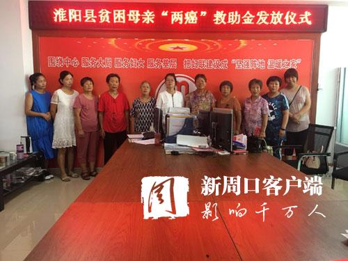 8月3日上午,淮陽縣婦聯(lián)在檔案館綜合大樓舉行“貧困母親兩癌救助”資金發(fā)放儀式,10名“兩癌”貧困母親獲得資助。