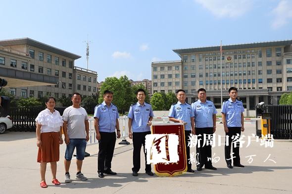 “太康警察真神了!我還沒有發(fā)現(xiàn)超市東西被偷,警察就通知我領(lǐng)東西哩!”昨日,失主鄭先生和家人把感謝錦旗送到太康刑警手中。