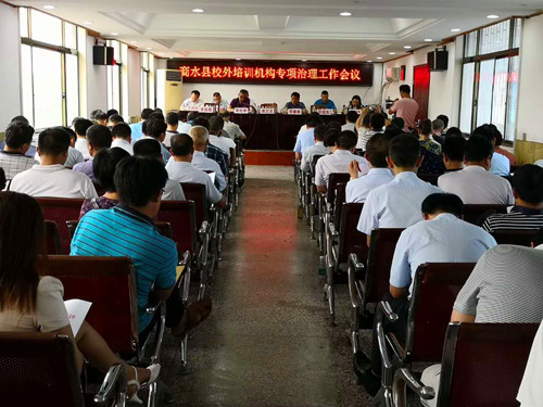 8月16日上午,商水縣校外培訓(xùn)機構(gòu)專項治理工作推進會在教體局四樓會議室召開??h教體、民政、人社、工商、公安、城管、食藥監(jiān)、消防等8個單位相關(guān)負(fù)責(zé)人,各鄉(xiāng)鎮(zhèn)(場、辦)分管教育副職,縣教體局各股室負(fù)責(zé)人,各中心校長、縣直學(xué)校(幼兒園)校長參加會議。會議由縣教體局負(fù)責(zé)人鄭春來主持。