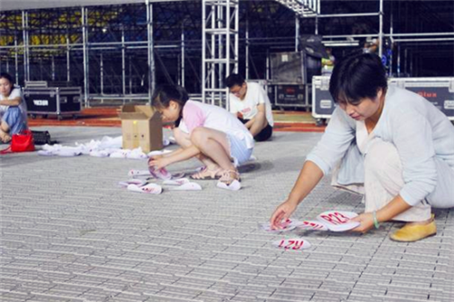 在場(chǎng)地的一側(cè),幾名工作人員正在全神貫注地整理一大堆號(hào)碼貼,“省運(yùn)會(huì)是全省的體育盛會(huì),能有機(jī)會(huì)參與這樣的運(yùn)動(dòng)會(huì)是一種榮幸,我們準(zhǔn)確地說應(yīng)該算是志愿者,因?yàn)槲覀儗儆诹x務(wù)勞動(dòng)?!逼渲幸幻空f,這是細(xì)活,急不得,號(hào)碼非常多,英文中的26個(gè)字母,分大小寫,然后還和阿拉伯?dāng)?shù)字進(jìn)行組合,她們的工作就是要把這些號(hào)碼捋順,防止出現(xiàn)差錯(cuò)。記者注意到,場(chǎng)地的四周放置了很多音響,工作人員正在對(duì)播音設(shè)備進(jìn)行調(diào)試,雖然還處于調(diào)試階段,但是聽起來(lái)已經(jīng)非常震撼。在場(chǎng)地旁邊,部分表演道具也整齊擺放著,看到這些精致的道具,開幕式當(dāng)天的文藝表演精彩程度可見一斑。