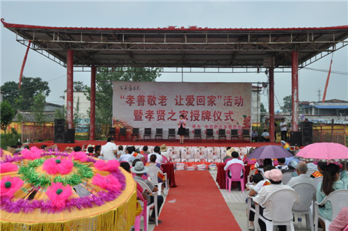 大會開始之前,來自該鄉(xiāng)20個(gè)行政村的廣場舞代表隊(duì)、戲曲代表隊(duì)、嗩吶代表隊(duì)先后出場,訾秀玲一曲《黃土高坡》贏得全場觀眾雷鳴般掌聲。緊接著,好兒子、好媳婦代表上臺為自己的父母磕了3個(gè)響頭,以表達(dá)對父母養(yǎng)育之恩的感激之情,老人們臉上流露出激動和幸福的淚水,現(xiàn)場掌聲經(jīng)久不息??h領(lǐng)導(dǎo)在主席臺上為36個(gè)孝賢之家授牌,并向獲獎?wù)弑硎咀YR。據(jù)介紹,該鄉(xiāng)自開展孝善敬老接老人回家活動以來,已有200多名獨(dú)居老人被兒子、媳婦接回家居住。為了表彰接老人回家的好兒子、好媳婦和孝賢之家,該鄉(xiāng)組織、策劃了這次大型活動。