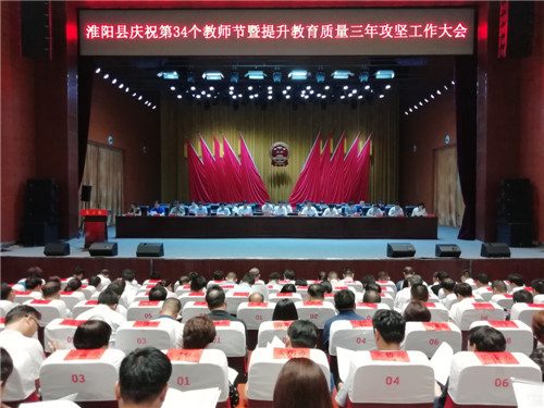 9月3日,在第34個教師節(jié)來臨之際,淮陽縣慶祝第34個教師節(jié)暨提升教育質(zhì)量三年攻堅工作大會召開。會議主要目的是總結(jié)一年來教育工作取得的成績,對教育戰(zhàn)線涌現(xiàn)出的“優(yōu)秀校長”“師德標(biāo)兵”“優(yōu)秀班主任”“優(yōu)秀教師”進(jìn)行表彰,并對全縣提升教育質(zhì)量三年攻堅工作進(jìn)行全面動員部署。