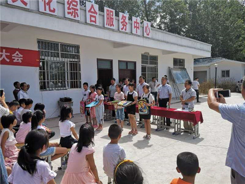 精準(zhǔn)扶貧,教育為本,以智為先。9月7日,值此全國第34個教師節(jié)和新學(xué)年開學(xué)之際,周口市稅務(wù)局領(lǐng)導(dǎo)徐平烽、史富更、張振祥等和相關(guān)科室負(fù)責(zé)人在機構(gòu)改革的關(guān)鍵時刻,抽出專門時間深入到對口幫扶村-----太康縣王集鄉(xiāng)李小橋行政村小學(xué)開展金秋助學(xué)活動。