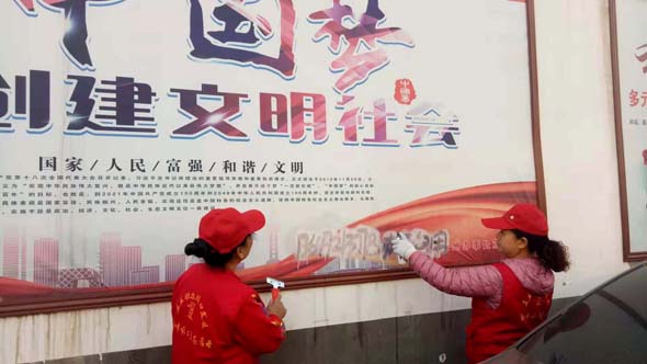 “我們有的是雙手,就算小廣告再多,也得把他們‘消滅’干凈?!敝驹刚邔O存梅一邊用鏟刀清理墻上的小廣告,一邊幽默地說,“大冬天,全當活動活動筋骨。”