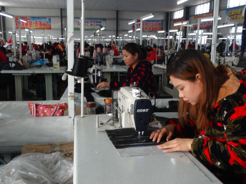 近年來(lái),沈丘縣針對(duì)不能外出就業(yè)但有勞動(dòng)能力和就業(yè)意愿的貧困群眾,采取“企業(yè)+扶貧車間+貧困戶”模式,引導(dǎo)縣域產(chǎn)業(yè)集聚區(qū)內(nèi)的服裝加工、電子組裝、戶外用品等勞動(dòng)密集型企業(yè)延伸產(chǎn)業(yè)鏈條,在貧困村規(guī)劃建設(shè)扶貧車間200余家,吸納貧困群眾就近就地就業(yè)。圖為12月3日,該縣付井鎮(zhèn)佳依服裝廠的工人正在忙著加工訂單服裝。②5 謝辛凌 攝