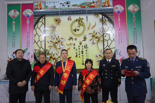 軍地聯(lián)手鑼鼓喧天送喜報(bào),功臣家人披紅戴花受尊崇??战当娔巢渴翘丶?jí)英雄黃繼光生前所在部隊(duì),今年以來(lái),先后有4名周口籍官兵在各類重大演訓(xùn)任務(wù)中立功受獎(jiǎng),為了使軍人的榮譽(yù)向官兵家庭拓展、向全社會(huì)輻射,該部決定開展“功耀門楣送喜報(bào)進(jìn)家門”活動(dòng),利用12月14日、15日兩天時(shí)間,選派專人成立“報(bào)喜”小分隊(duì),為我市4名官兵家庭送去立功喜報(bào)和慰問(wèn)金。