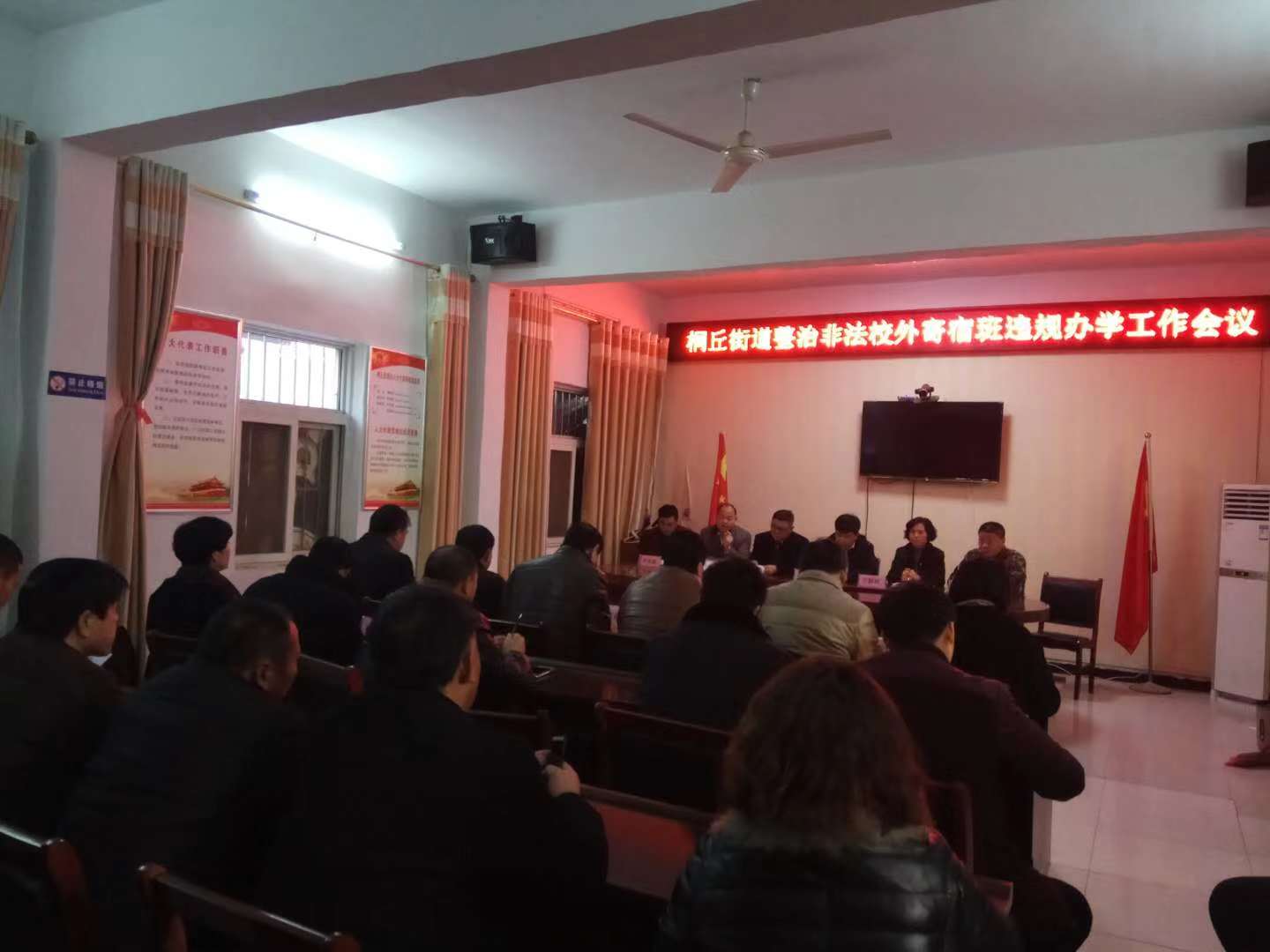 12月18日,扶溝縣桐丘街道辦事處召開整治非法校外寄宿班違規(guī)辦學(xué)工作會(huì)議??h委常委、副縣長(zhǎng)趙紅亮出席會(huì)議并講話??h教體局、縣消防大隊(duì)、城關(guān)派出所、金海路派出所有關(guān)人員,桐丘街道辦全體機(jī)關(guān)干部、中心校和各中小學(xué)負(fù)責(zé)人,各居委會(huì)、行政村分管消防安全工作副職參加會(huì)議。桐丘街道辦主任趙紅巖主持會(huì)議。